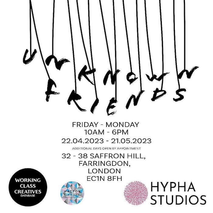 Delighted to share news the "Unknown Friends" exhibition PV was a great sucess! Time has flown by and this weekend is now our third week of opening , so please pop by and see the fabulous mix of work created by talented artists from the Working Class Creatives Database. Thanks again to Hypha Studios, and Aimée Neat for facilitating and curating this amazing space. You can find us at 32-38 Saffron Hill, Farringdon, London, 2 minutes walk from Farringdon station. We're open 10am-6pm Friday-Monday and Weekdays by appointment. The closing weekend for exhibition is 21st May and will be marked by a film night on Friday 19th May. More details to follow so check back here or my new insta @sleepingdavecorbett