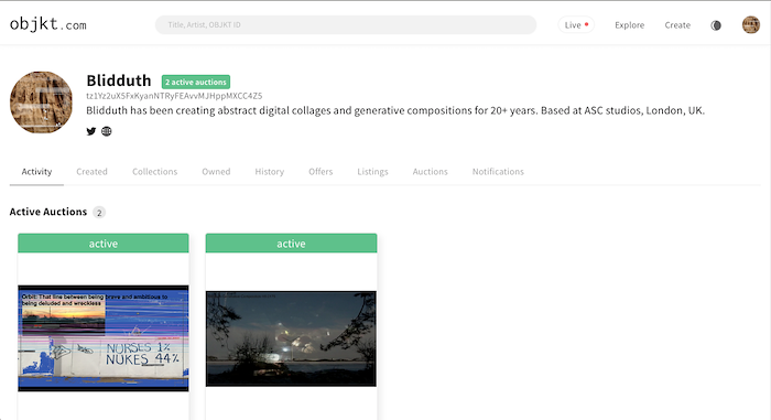 Heres the new profile https://www.hicetnunc.xyz/Blidduth