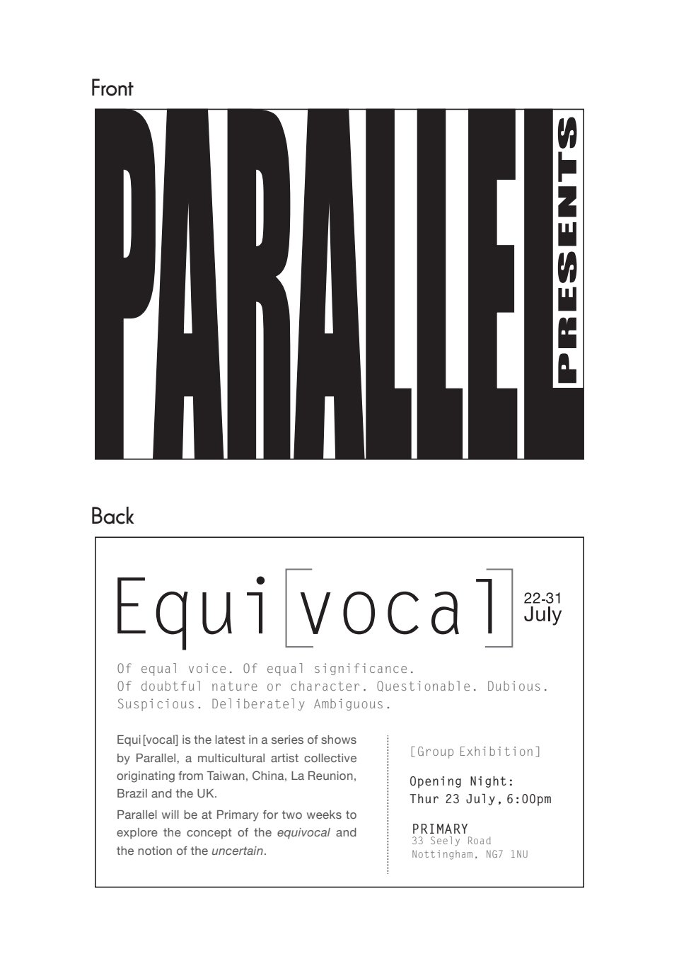 “Equivocal”, Paralell group show at Primary Studios, Nottingham |