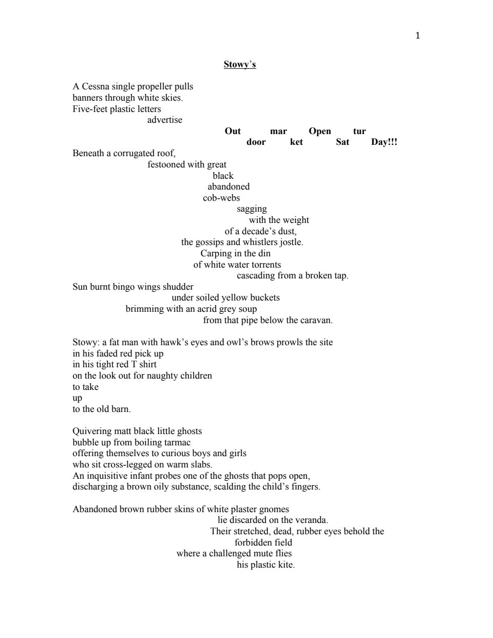 Selection of Experimental & Creative Writing pieces 2012 -2018.