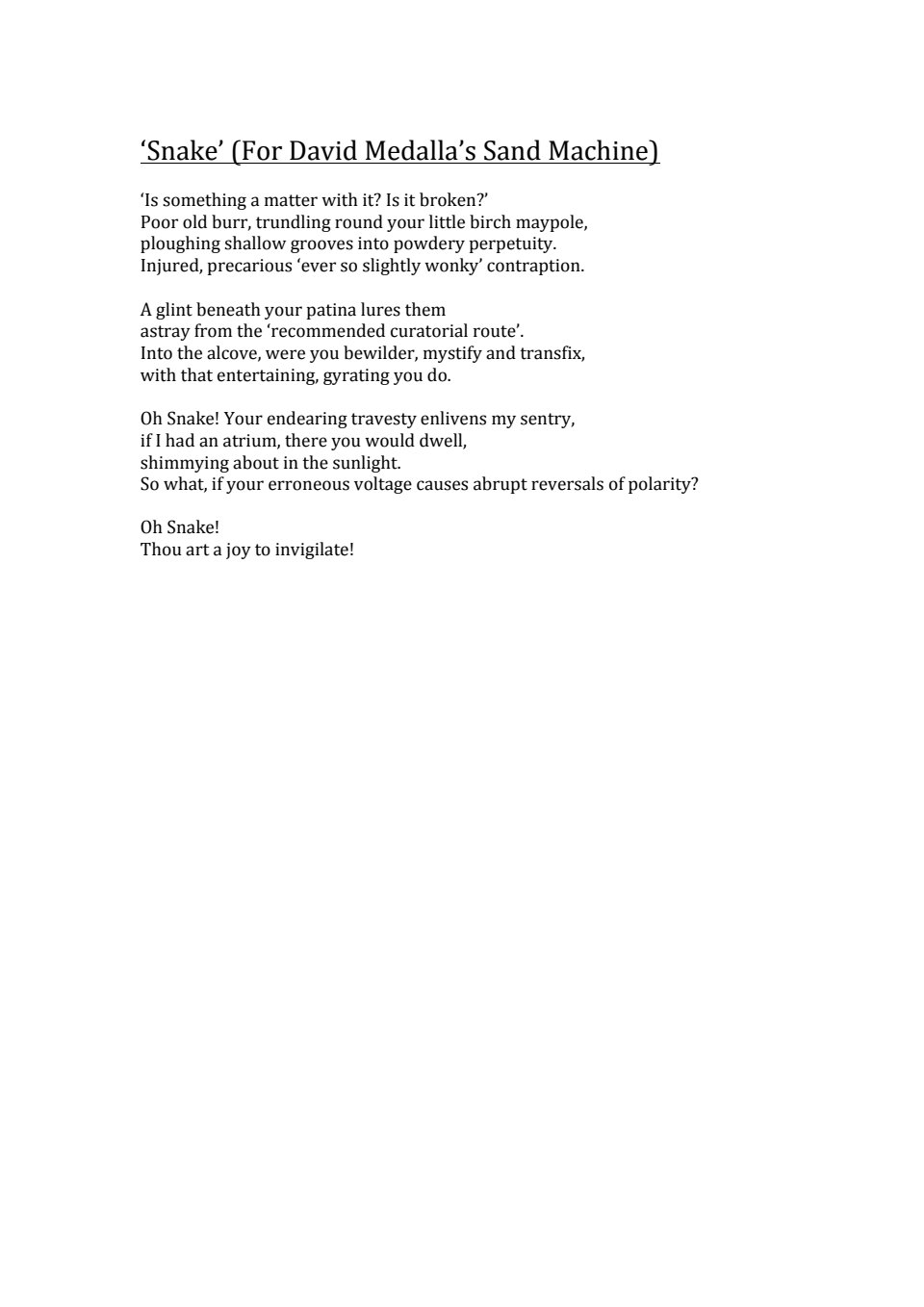 "Snake" Poem for David Medalla